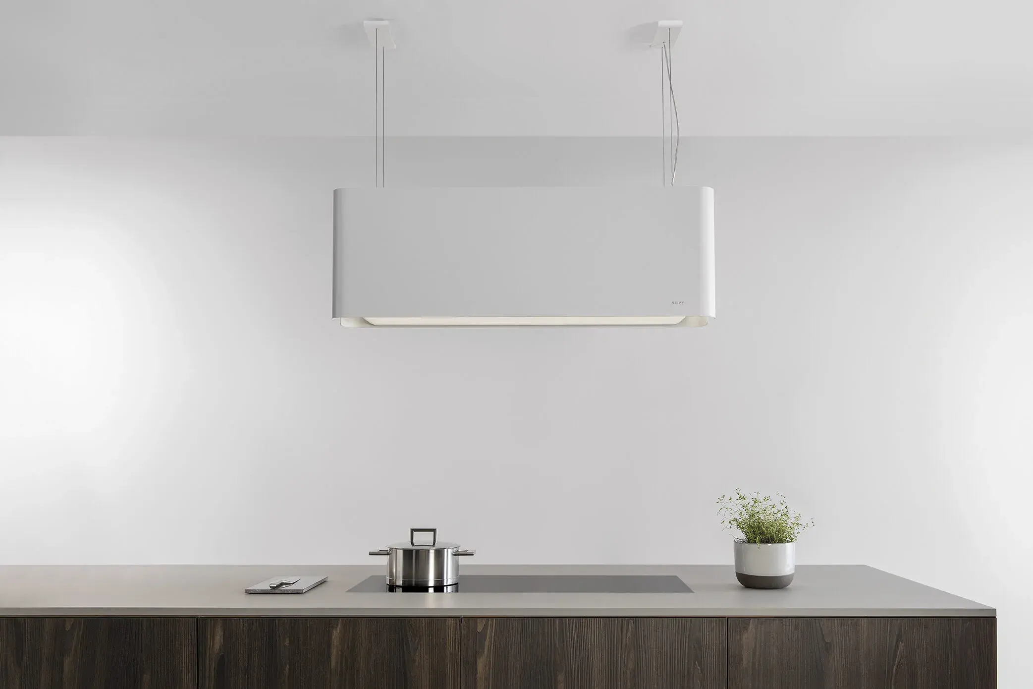 Genau hier kommt die Auswahl der passenden Geräte ins Spiel. Denn was auf den ersten Blick wie ein Detail wirkt, entscheidet oft über den Komfort im Alltag. Ein gutes Beispiel ist der Dunstabzug: Ist kein Abluftsystem möglich, braucht es eine leistungsfähige Umluftlösung mit hochwertigen Filtern. Bei sehr hohen oder schrägen Decken lassen sich klassische Hauben oft nicht installieren – dann sind moderne Muldenlüfter wie die Novy Easy oder flexible Lösungen wie die Inselhauben Novy Mood oder die Novy Phantom Cable ideal. Die flüsterleisen Inselhauben werden an filigranen Stahlseilen befestigt und passen sich architektonisch anspruchsvollen Räumen mühelos an.